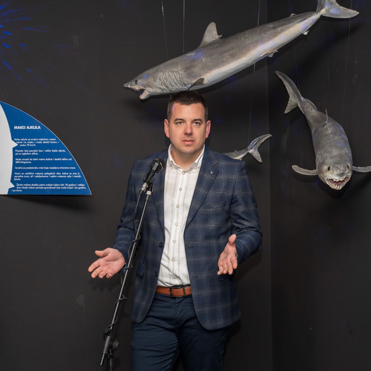 Na otvaranju direktor Prirodnjačkog muzeja u Beogradu Slavko Spasić istakao je značaj višedecenijske saradnje dvije institucije, dok je autor izložbe mr Stefan Ralević ukazao na raznovrsnost i značaj ajkula i raža Jadranskog mora, podsjećajući nas da su upravo ove vrste neizostavan dio osjetljive ravnoteže morskih ekosistema.