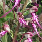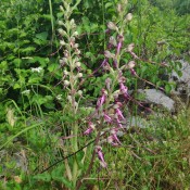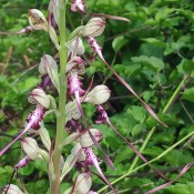 Kozonoška Himantoglossum caprinum (M. Bieb.) Spreng. je neobična orhideja koja može narasti do jednog metra, a zabilježeni su primjerci visine i do 120 cm. Ime duguje jedinstveno građenim cvijetovima, zapravo jednom dijelu cvijeta koji se zove medna usna. Medna usna kozonoške je trorežnjevita, bočni režnjevi su kratki, a središnji je jako izdužen, spiralno uvijen i na vrhu duboko usječen, svjetlijih ili tamnijih ljubičastih tonova, sa bijelom i istačkanom centralnom prugom. Središnji izduženi i usječeni režanj podsjeća na kozje noge, zato je ova neobična orhideja dobila nesvakidašnje ime – kozonoška. Ostali listići cvijeta formiraju blijedozelenu kacigu sa ljubičastim žilama.