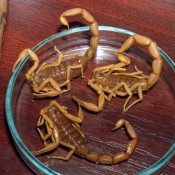 Najkrupnija škorpija u Crnoj Gori je Mesobuthus gibbosus (Brullé, 1832). Lako ćete je prepoznati jer je jedina tamno-žute do svijetlo braon boje, dužine preko 5 cm. Široko je rasprostranjena u Mediteranu, a ja sam je nalazio, sem duž primorja, u Rogamima. Već kilometar sjevernije, u Stijeni Piperskoj, nisam na nju naišao ni nakon decenije traženja.